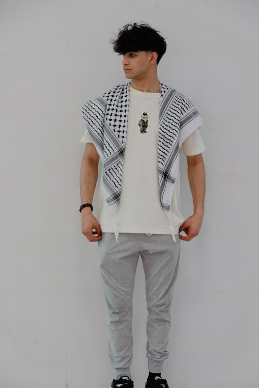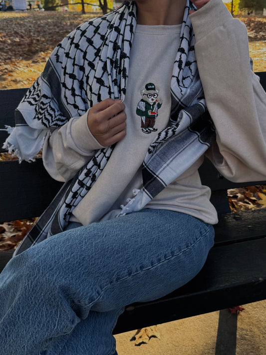Embroidered Kuffiyeh Bear Cream Longsleeve Tee