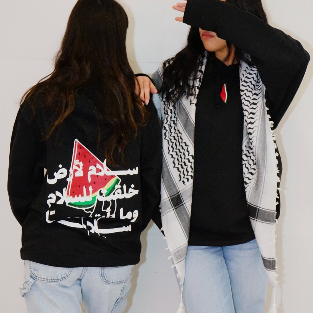 The watermelon portrays Palestinian resistance and persistence. When Isr@3l banned the Palestinian flag, activists started using watermelons to represent, since they share the same colors.